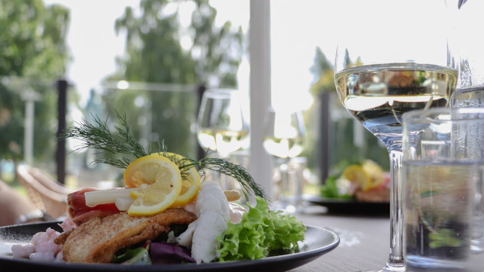 Nyd en lækker middag på Restaurant Svanen med en skøn panoramaudsigt over Haderslev Dampark.